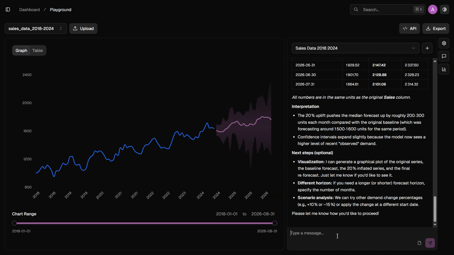 Deploy real-time forecasts via API or dashboard, ready for enterprise-scale decisions.